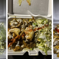 Fried then grilled all vegetable falafel patty, green pepper, onion, mixed vegetables. Served over Royal biryani rice and lettuce. Topped with our signature white and red sauce.